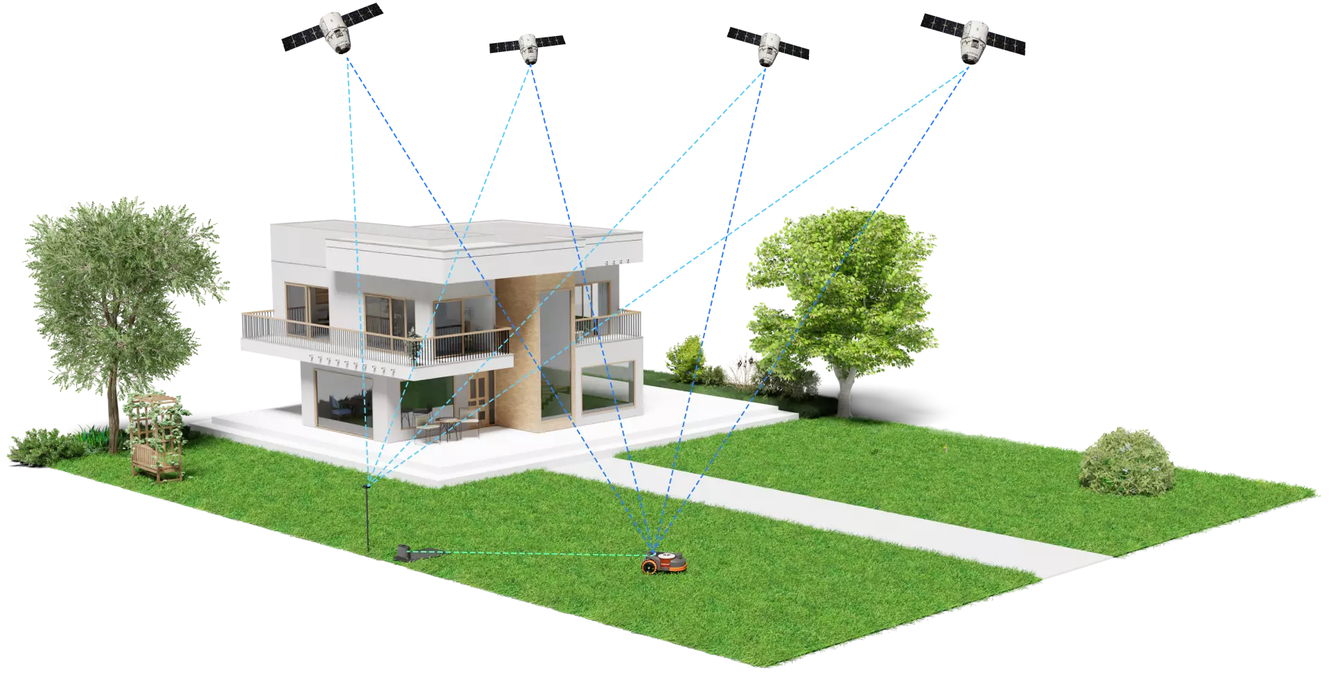 Compared with GPS, the Real-Time Kinematic (RTK) Positioning System significantly improves positioning accuracy. Combining data from multiple sensors, Navimow can handle even the most complex terrains while mowing in the most efficient pattern possible.